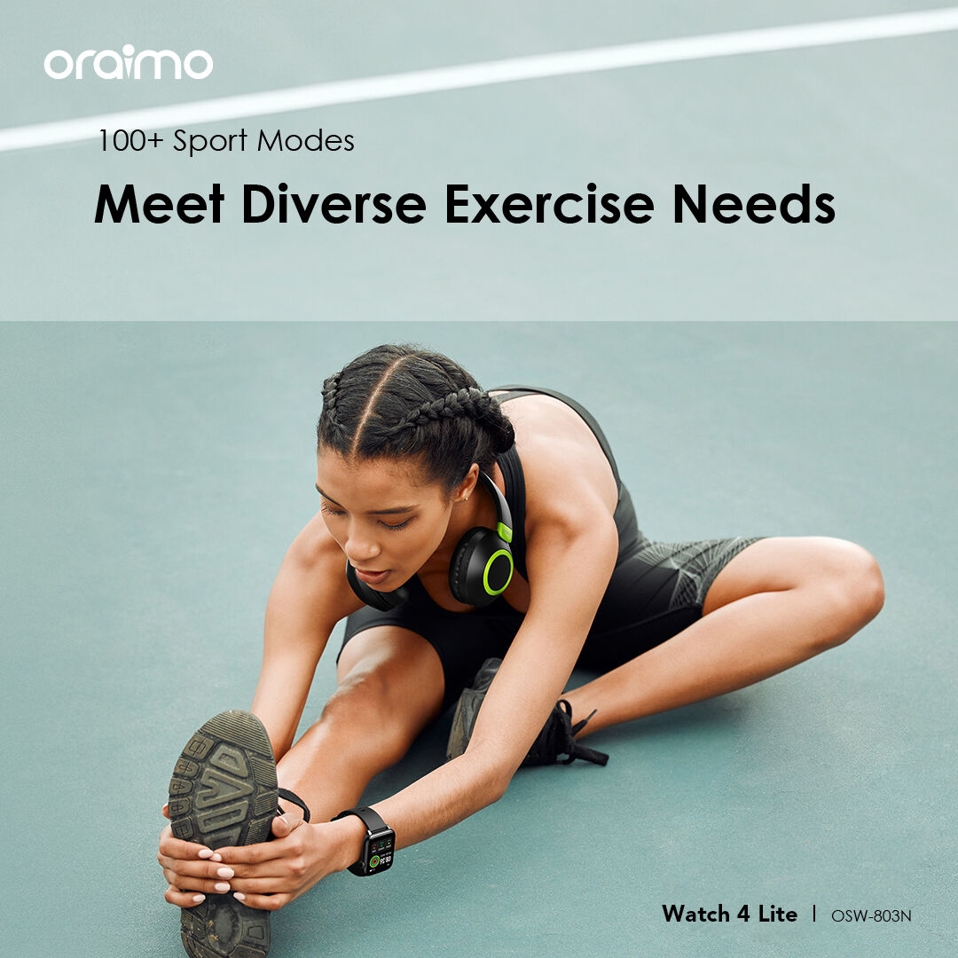 The oraimo Watch 4 Lite, with over 100 sports modes including outdoor running, treadmill, and cycling, caters to a variety of exercise preferences. It precisely tracks exercise performance and allows one-click sharing of exercise data and scenery encountered in sports to social media.