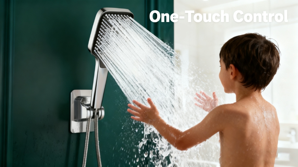 Adjustable patterns include: rainfall, massage, mist, and jet spray - suitable for hair care, relaxation, and pet cleaning.