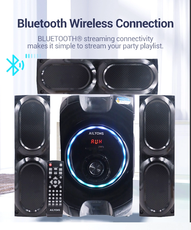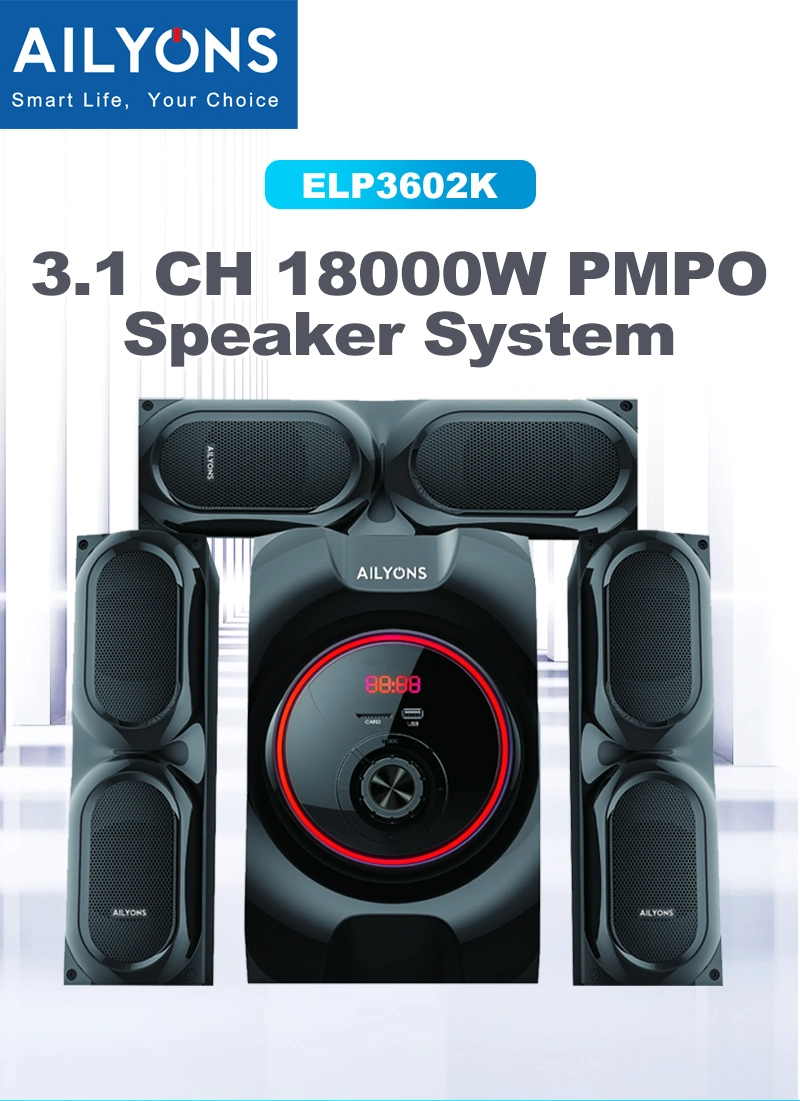 NEW AILYONS 3.1 CH Speaker has a Powerful 3D surround education effect, the sound effects are better and shocking. AILYONS Speakers boast intuitive sound features, allowing you to tailor performance to your preferences, coupled with clear LED displays for enhanced usability. Explore our diverse selection of home theatre speakers, equipped with a variety of built-in add-ons such as Bluetooth, Auxiliary, USB, and Micro SD support, alongside MP3 and FM Radio functionality, and much more.