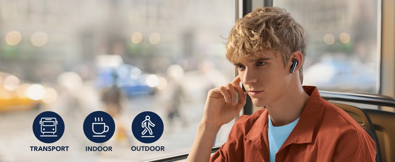 Pick from 3 noise cancelling modes based on your surroundings for a distraction-free experience.