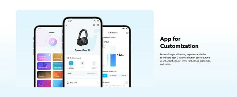 • 2X Stronger Voice Reduction: Stay focused during bustling journeys with our upgraded noise cancelling structure. Space One excels in blocking out mid to high-frequency sounds with 2X more* voice reduction. *Compared with soundcore Life Q30 headphones.