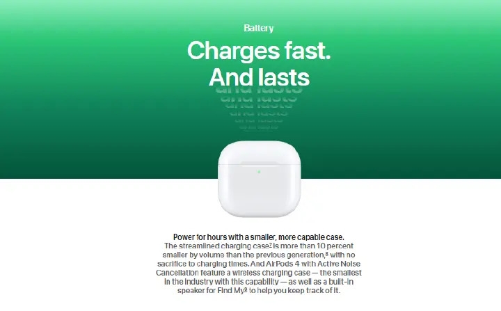 Up to 6 hours of listening time on a single charge (up to 5 hours with Personalized Spatial Audio enabled).