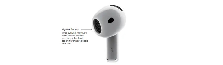 Each AirPod weighs just 4.28 grams (0.15 oz), with dimensions of 30.79 mm height × 18.26 mm width × 19.21 mm depth.