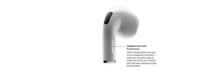 Force Sensor: Uses a "pinch" control on the stem (instead of tapping) to play, pause, skip tracks, or answer calls.