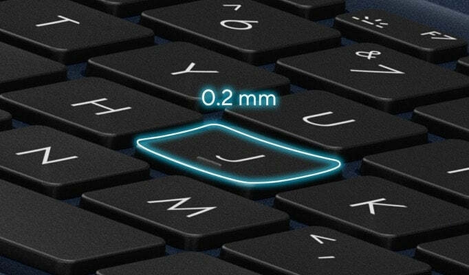 The 0.2 mm key-cap dish is designed to match the shape of your fingertips so your fingers are gently guided to the ideal contact point with the keys.