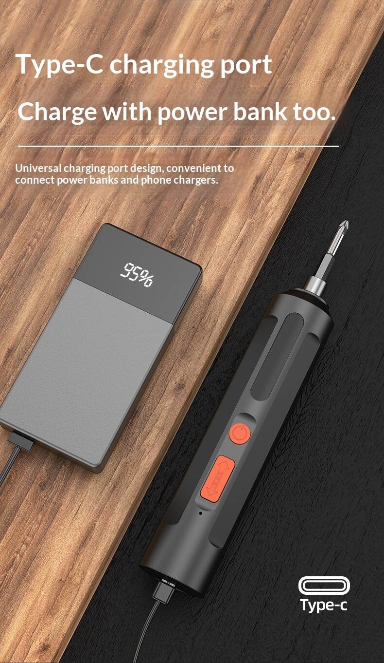 【Rechargeable & Anti-slip Handle】 The unique design of the soft rubber handle, which is non-slip and easier to hold. And the cordless screwdriver built-in rechargeable lithium-ion battery power supply, long-lasting performance, the small drill cordless can accept any Micro-USB charging cable.