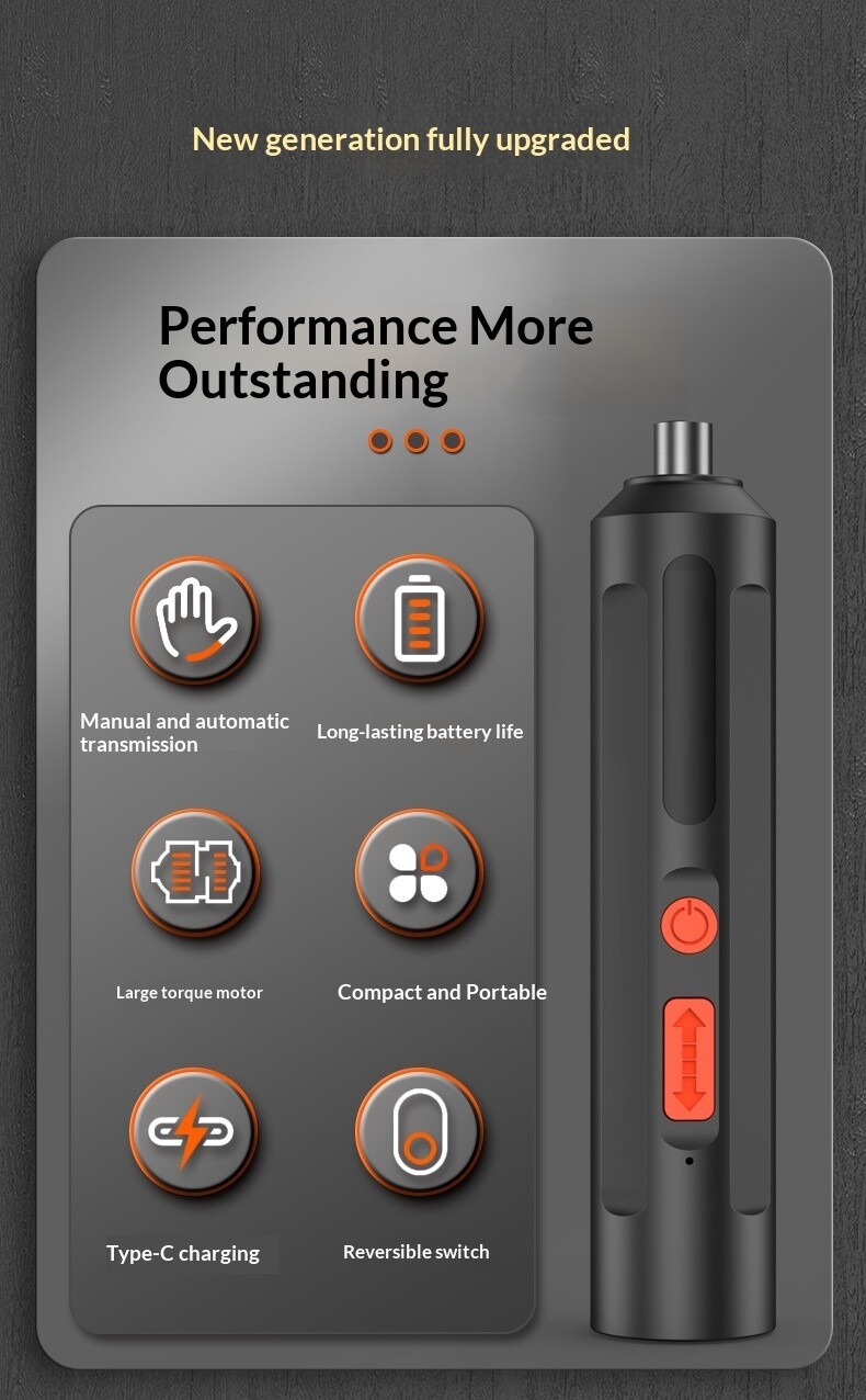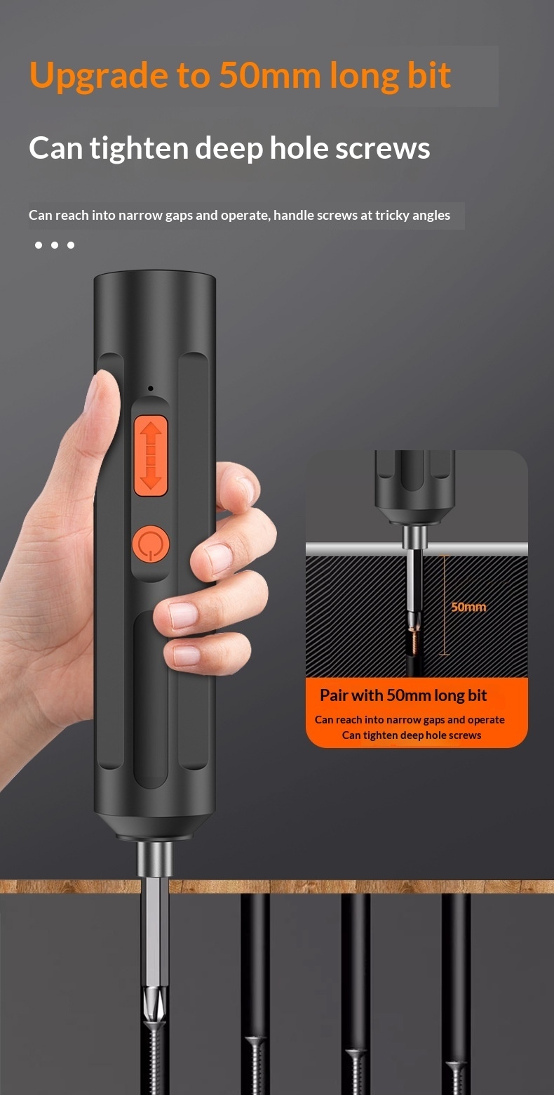 【Four Adjustable Torque】: Electric screwdriver is equipped with a four-gears torque, the maximum torque up to 5N.m, that can be competent to screw the large torque work of the board, but also easy to grasp the electronic repair, can be effortless maintenance work.