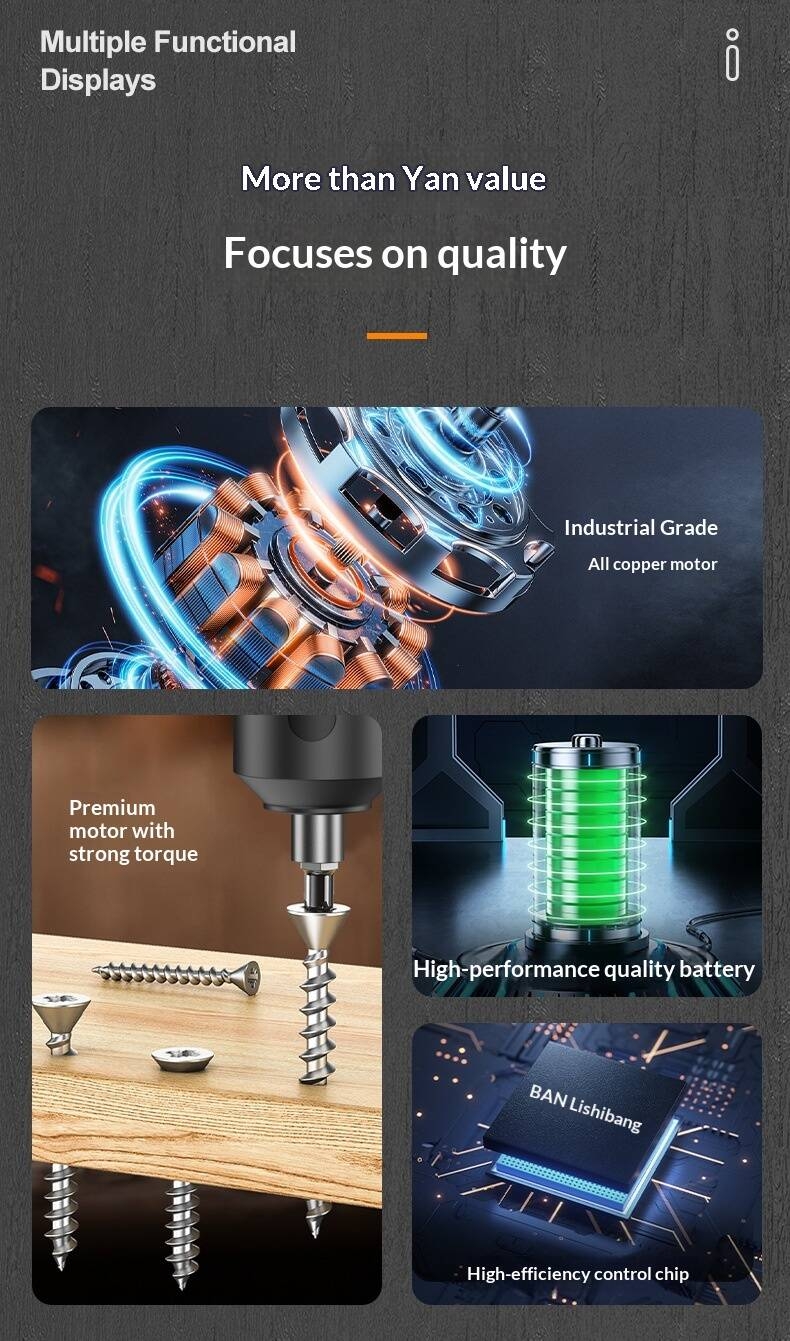 【Widely Application】 Different grades of torque can meet different needs, such as furniture assembly, kitchen repair, screw tightening, computer appliance repair, etc., Electric screwdrivers cordless is a good helper for home improvement, DIY.