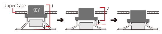 Shock absorbing structure is installed inside each key to create a cushion. Comfortable design allows prolonged use without getting tired owing to two-step touch configuration.