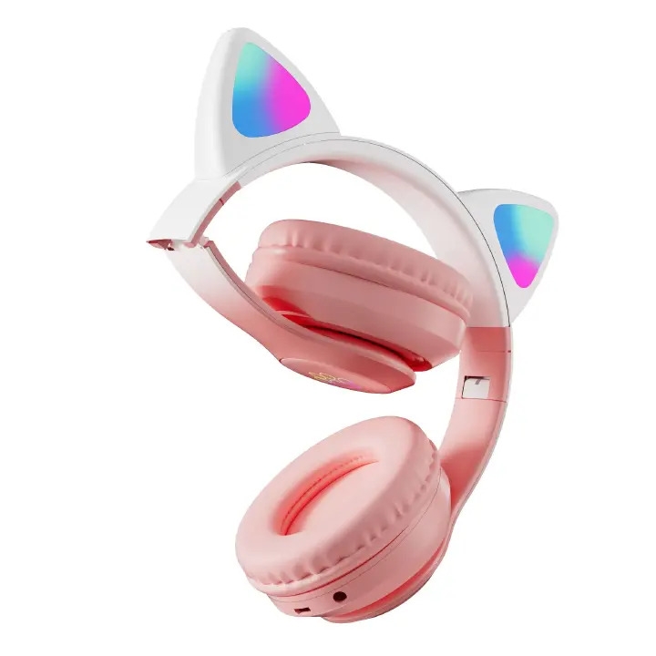 STN-28 Cute Cat Ears Stereo Bass LED Wireless Headphones-Shenzhen Shengye Technology Co.,Ltd STN-28 Cat Ear Headmint Bluetooth Headset 5.0 Wireless Cool Color Overhead Headphones necomimi Pink