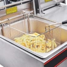 Two heavy-duty fryer baskets come included and feature black coated handles for heat protection and operator comfort. A coated, heat-resistant handle ensures comfortable use and added safety.