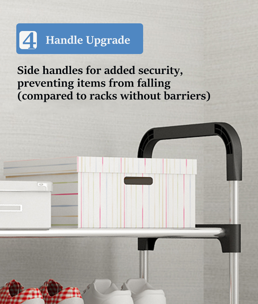 | 7-Tier Rack, 21 Pairs | 6-Tier Rack, 21 Pairs | 5-Tier Rack, 18 Pairs | 5-Tier Shoe & Hat Rack |