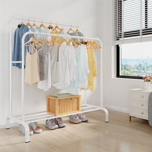 | Garment rack in the room You can put the garment rack in the room or living room to meet your daily storage needs of clothes. Not only can store clothes, but also shoes, shoe boxes, etc. | Multifunctional open coat rack The heavy-duty open garment rack can arrange your clothes neatly, and you can quickly find the clothes you need. It can also be used as a drying rack. |