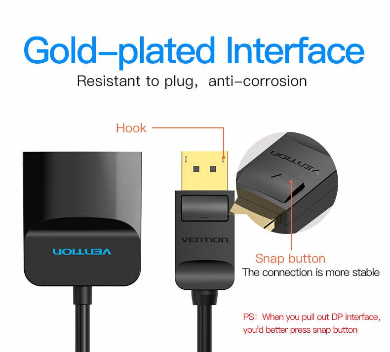 Durability is key when it comes to everyday tech accessories, and the Vention DP to HDMI Converter does not disappoint. With its robust ABS shell, this adapter is highly resistant to wear and tear and corrosion, promising long-lasting performance. The gold-plated interface not only enhances the connectivity but also provides superior resistance to oxidation and corrosion, ensuring reliable signal transmission over extended use. This combination of durability and sleek design makes it a perfect addition to any tech arsenal.