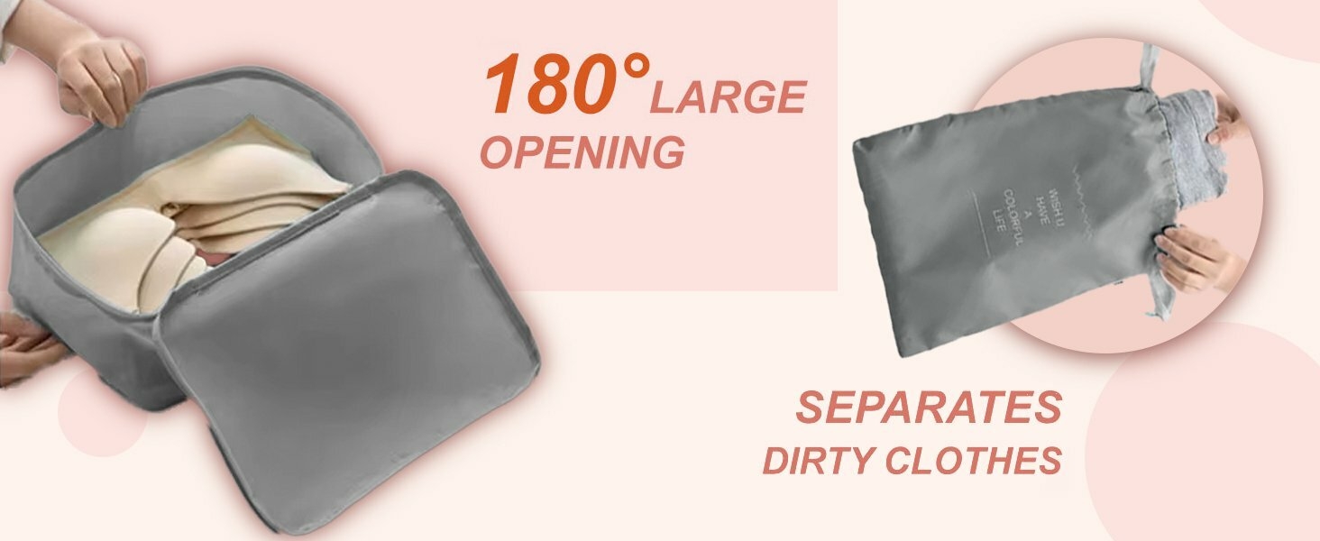 Quality Assurance: With different size, the travel essential bag set can store and classify clothes, dirty laundry, bra, underwear, shoes, socks, cosmetics, towels, toiletries and electronics accessories well, a good companion for going out.