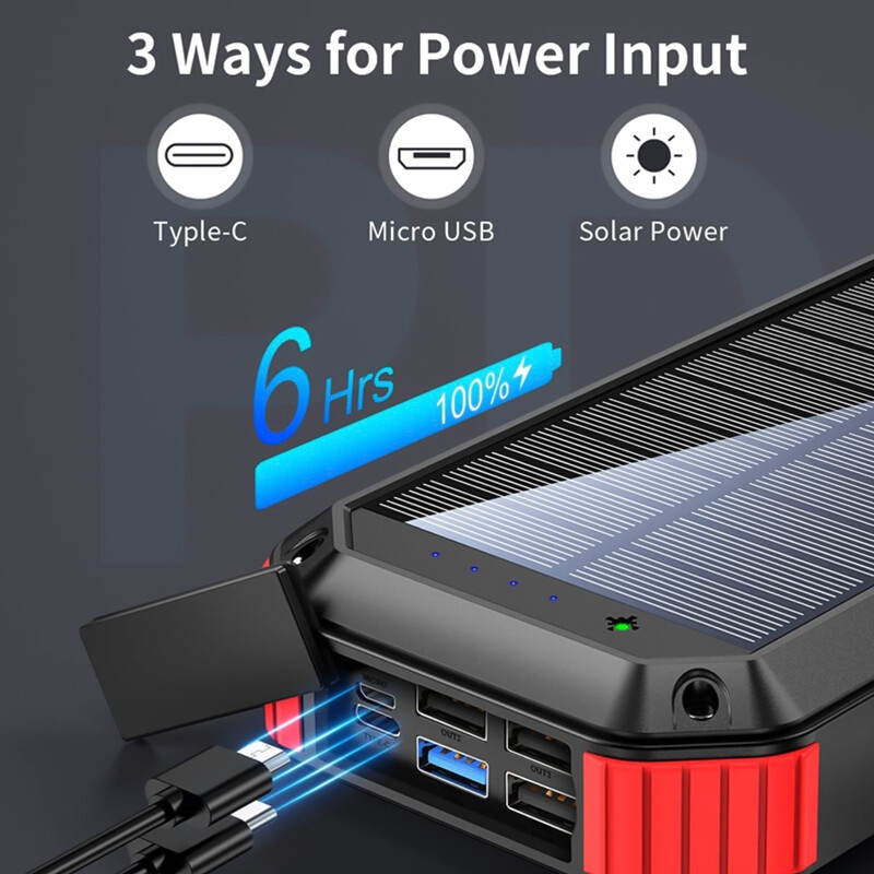 The solar power bank can charge 6 devices at the same time, which saves your time costs considerably.