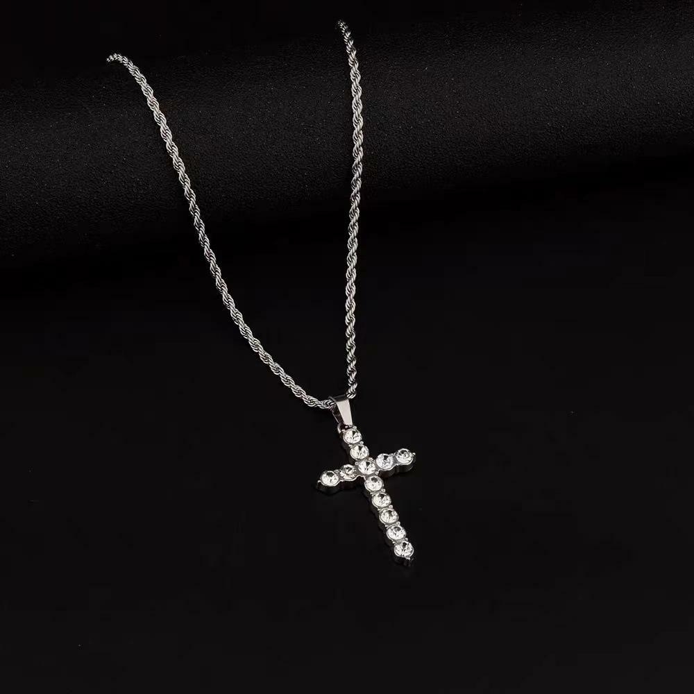 Key FeaturesProcessing technology: Diamond inlayStyle Category: Personalized TrendProduct Category: AccessoriesPendant Material: AlloyChain style: Fried Dough Twists chainMaterial: Stainless steelShape: GeometricPopular elements: cross, Fried Dough TwistsStyle: INS stylePerimeter: 51cm (inclusive) -80cm (inclusive)Popular element classification: Shape/Pattern