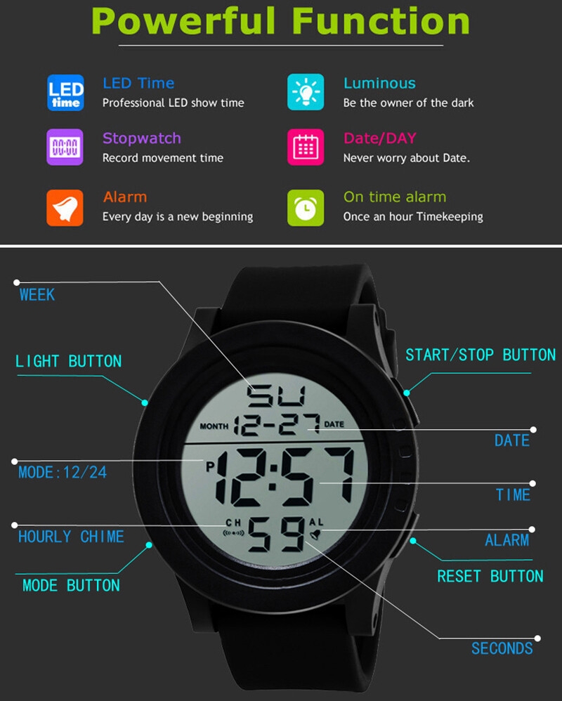Water Resistant: 5 ATM, Also for shower, swimming and <50m diving.(Pls don't press any key under water)