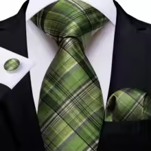 Make a bold statement with this Sage green check plaid Necktie Set, featuring a matching pocket square and cufflinks. Perfect for formal events, business meetings, or casual sophistication, this set combines vibrant colors and a classic checked pattern to elevate any outfit.