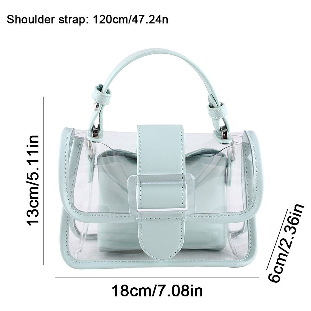 ![]() Women Jelly Small Shoulder Bag PVC Transparent Ladies Crossbody Messenger Bags Fashion Shopping Daily Luxury Handbag Feature: 1. High-Quality Material: This shoulder bag is made of high-quality PVC material that is not only soft and comfortable but also easy to maintain. 2. Compact Size: With a size of 18*13*6cm, this bag is compact and easy to carry around. 3. Functional Structure: The messenger bag has a neat and organized structure that can accommodate a variety of items, meeting your daily needs. 4. Time-Saving and Convenient: The transparent design allows you to quickly pass through security checks at airports or other public locations without delay. 5. Perfect Gift Choice: This crossbody bag is an excellent choice for shopping, parties, travel, and street photography. It's also a great gift for any special woman in your life including mothers, girlfriends, or wives. Note: 1 x Shoulder Bag