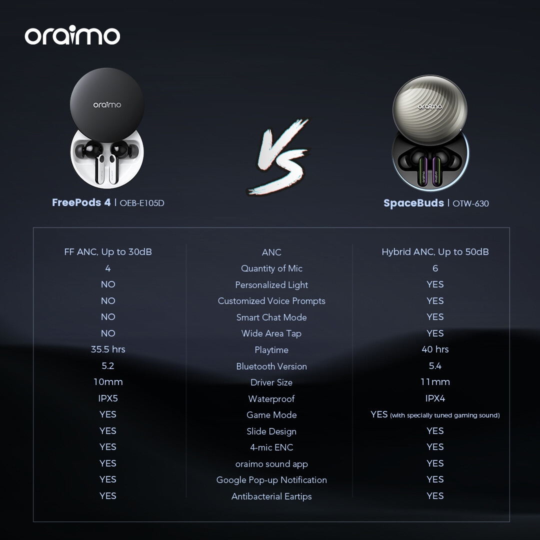 oraimo SpaceBuds Hybrid ANC True Wireless Earbuds Customized Voice Prompt