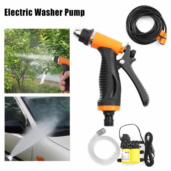 portable & vehicle-mounted Power: 70W high pressure water pump with build-in pressure switch Working Voltage: DC 12V (with car cigarette lighter adapter) Inlet water pipe: 1.2m Outlet water pipe: 8m Power Connecter: car cigarette lighter Power Cord: 3m (With ON/OFF Switch) Weight: about 1.3KG for the whole set Pump: Power: 70W Working Voltage: DC 12V Current range: 6A Pressure (Max.): 0.85-0.9Mpa Flow (Max.): 5-6 L/min Package Contents: 70W washing pump x 1pc Water Gun x 1pc Power cable 1pc Water inlet hose: 1.2m Water outlet hose: 8m Water inlet filter x 1pc Towel x1 Car sponge x1 Spare Parts: quick connecter x 1pc + fuse x 1pc + "O" ring x1pc Our Advantages: Any spare parts available at any time you need, such as the hose, water gun, AC adapter