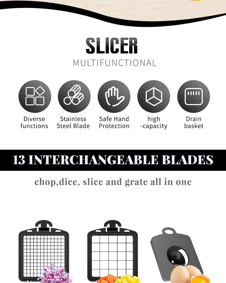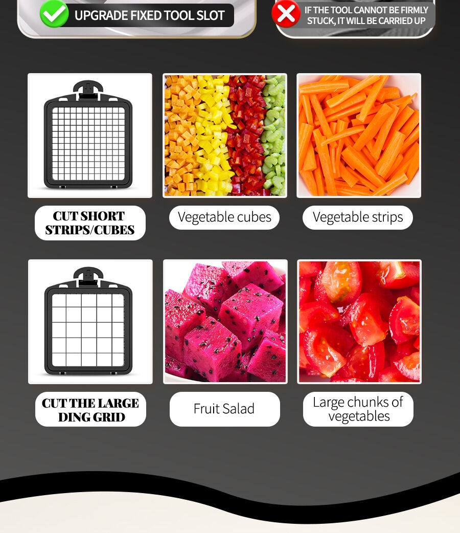 Key FeaturesHighlightsOne machine replaces multiple tools: no need to buy a separate vegetable cutter, cost-effective.Kitchen storage friendly: accessories can be stacked for storage, not taking up space.Upgraded durability: stainless steel blades are rust-resistant and have a long service life.Novice friendly: easy to operate, no complicated skills required.
