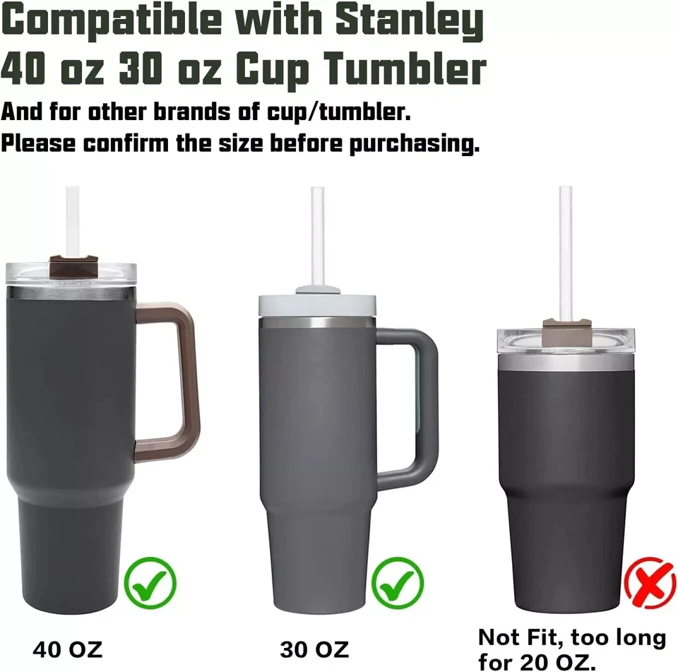 These plastic straws are compatible with Stanley cup 30oz/40oz , Stanley Adventure Quencher Travel Tumbler 30oz/40oz Cornflower and 30oz/40oz Quencher with handle. Note: The straws are specially customized for Stanley Cups, please confirm your cup model before purchasing, our straws are only compatible with the above style trademarks.