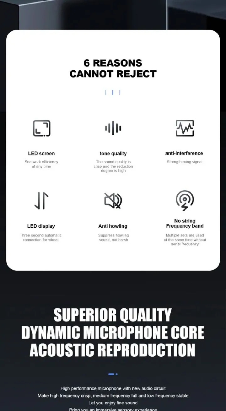 Key FeaturesHighlights:It doesn't need APP,plug-and-play,one-click connection,easy to wear.Intelligent noise reduction,long endurance,easy to cope with all kinds of noisy environment,worry-free shooting,meet your needs for a day.360 full pointing pick up,record every detail of the sound.5Small and convenient,it compatible with various devices,support mobile phone, tablet, camera, notebook,etcWireless Lavalier Microphone Single Microphone Support Android and iOS systems is the perfect choice for recording a conversation between two people.