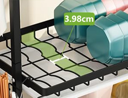 | Large Plate Storage Rack The top tier is designed to hold up to 17 plates with diameters ranging from 20 to 35.5 cm. Each dish slot is 2 cm wide, providing a snug and secure fit for standard flat plates. | Large Bowl Storage Rack The bowl slots are 4 cm wide, offering ample space to accommodate up to 18 bowls of various sizes and shapes securely and neatly. |