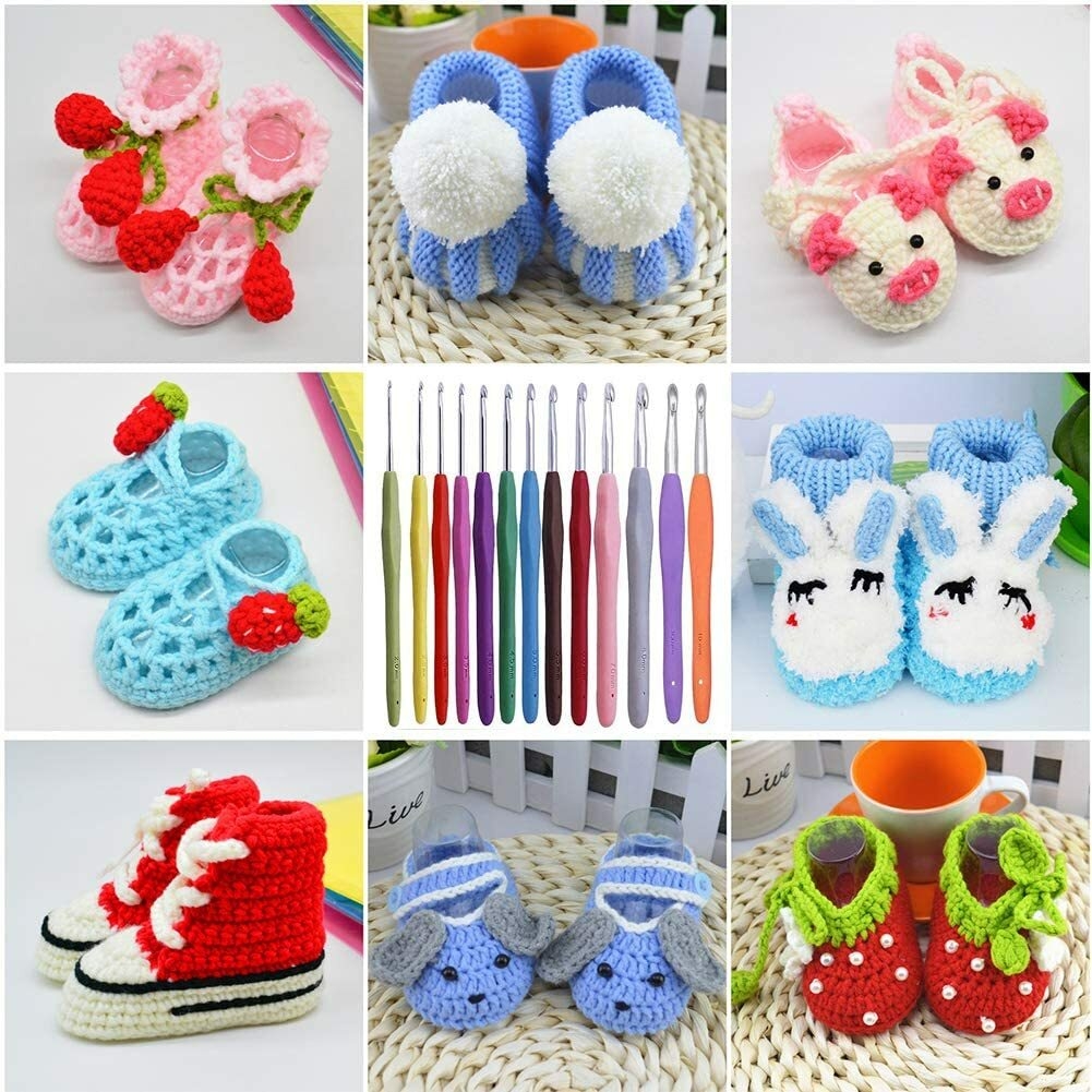 67-in-1 Crochet Hook Set-DIY Knitting Tool Kit,13 Sizes Crochet Kit Description: The crochet hook is made of high-quality aluminum material and is durable. The handle is made of soft silicone for more comfortable use. The long crochet aluminum hook digs deep into the soft silicone handle to prevent the hook from falling out. Stronger and more durable than plastic crochet sets. Each knitting hook is designed with a soft, comfortable handle, providing an ergonomic hold and reducing hand fatigue. No more discomfort or hand cramps when you crochet for longer periods of time. Suitable for beginners and experienced crochet enthusiasts alike! Unlike other small crochet hooks that are marked only on one side, the crochet hook set has the dimensions printed and engraved on the hook shank. No need to worry about the markings fading after long-term use. Comes with a storage box to store all your crochet sets. The portable design allows you to take your crochet projects anywhere. Makes a great gift for friends and family who love knitting or are interested in crochet! Features: 1.Crochet hook set: This ergonomic crochet hook set includes 13 pieces handle crochet hooks, 4 pieces plastic handle half crochet hooks, 3 pieces Knitting needles,6 pieces plastic sewing needles,20 pieces of plastic marking buckles and 20 pieces of open marking buckles and comes with a gray storage bag to meet your different crocheting needs. 2. Crochet hook is painless: The crochet hook has a soft and comfortable rubber grip, which can reduce or eliminate hand, wrist or finger pain, and you will not feel uncomfortable even if you use it for a long time. Great for arthritic hands. 3. Enjoy crocheting: Whether you are a beginner or an experienced crochet enthusiast, you can use crochet hooks of various sizes to help you complete outstanding crochet works! Enjoy crocheting with family and friends. 4. Easy to carry: Equipped with a portable storage bag, it is convenient to store and carry crochet and knitting accessories, so you will never lose anything again. Easily fits into backpacks, luggage, suitcases. Perfect for traveling, or taking it wherever you want to go. 5. Easily identify crochet hook sizes: Each hook is color-coded, and different colors match different knitting needle sizes. Each hook is marked with numbers and letters, no need to worry about fading. 6. PERFECT GIFT: If you are looking for a gift for your mom, friend, girlfriend, sister and all crochet lovers, crochet hooks are the perfect gift for anyone who loves the craft of crochet. This is a good choice for you. Specification: Product name: 67-piece crochet set Product weight: 0.2kg Packing size: 20*9*4cm Package includes: 67-in-1 crochet set*1