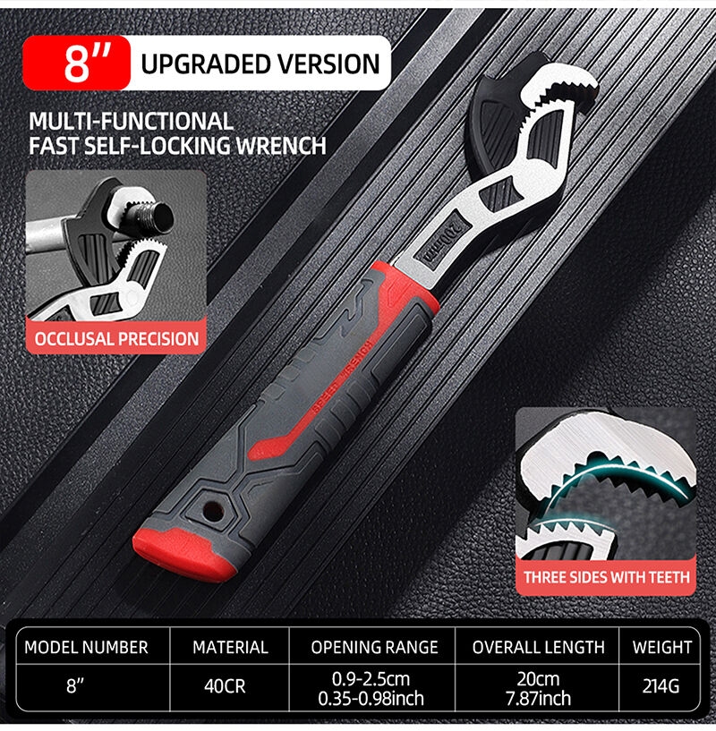 6-inch + 8-inch Multi-functional Adjustable Wrench, 2-piece Pipe Wrench Set, suitable for automotive, bicycle, and pipe repair, hand tools