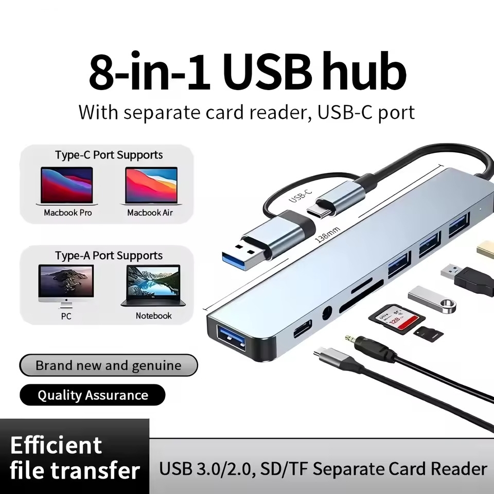 8-IN-1 VERSATILE CONNECTIVITY – PLUG-AND-PLAY CONVENIENCE – UNIVERSAL COMPATIBILITY – COMPACT & DURABLE DESIGN