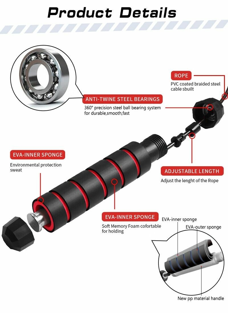 Heavy Weight skipping rope with 0.7kg weight on each hand which enables firm up your arms as you are skipping. It can be used by individual who want to concentrate on tonning their arms and it is also used by boxers This like carrying dumbbell on your both hand can help you burn roughly 1,300 calories per hour. Specifically: “This aerobic exercise can achieve a “burn rate” of up to 1300 calories per hour of vigorous activity, with about 0.1 calories consumed per jumpThis like carrying dumbbell on your both hand can help you burn roughly 1,300 calories per hour. Specifically: “This aerobic exercise can achieve a “burn rate” of up to 1300 calories per hour of vigorous activity, with about 0.1 calories consumed per jump