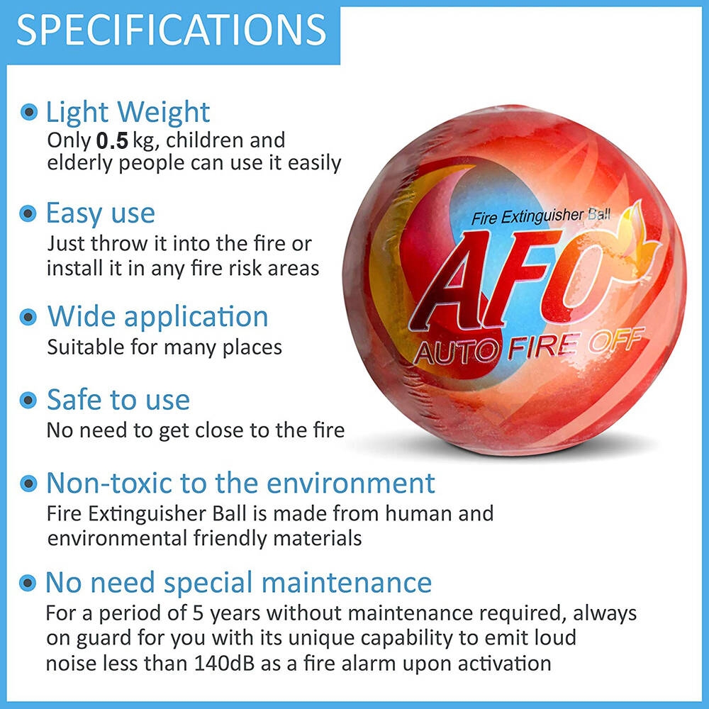 AFO Auto Fire Extinguishing Ball is a ball-shaped fire extinguisher, Simply thrown into a fire, it will activate within 3-5 seconds and effectively disperse extinguishing chemicals.