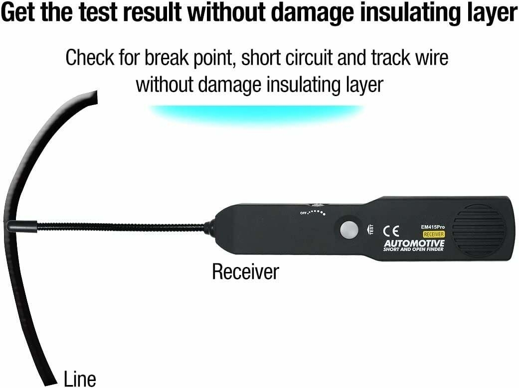 * Easy to use: Simply connect the transmitter in series to the circuit or wire under test (e.g., replacing a blown fuse, connecting a jumper connector, in series with a break, in a light bulb socket, etc.), then scan the circuit/wire with the tracer to locate the fault.