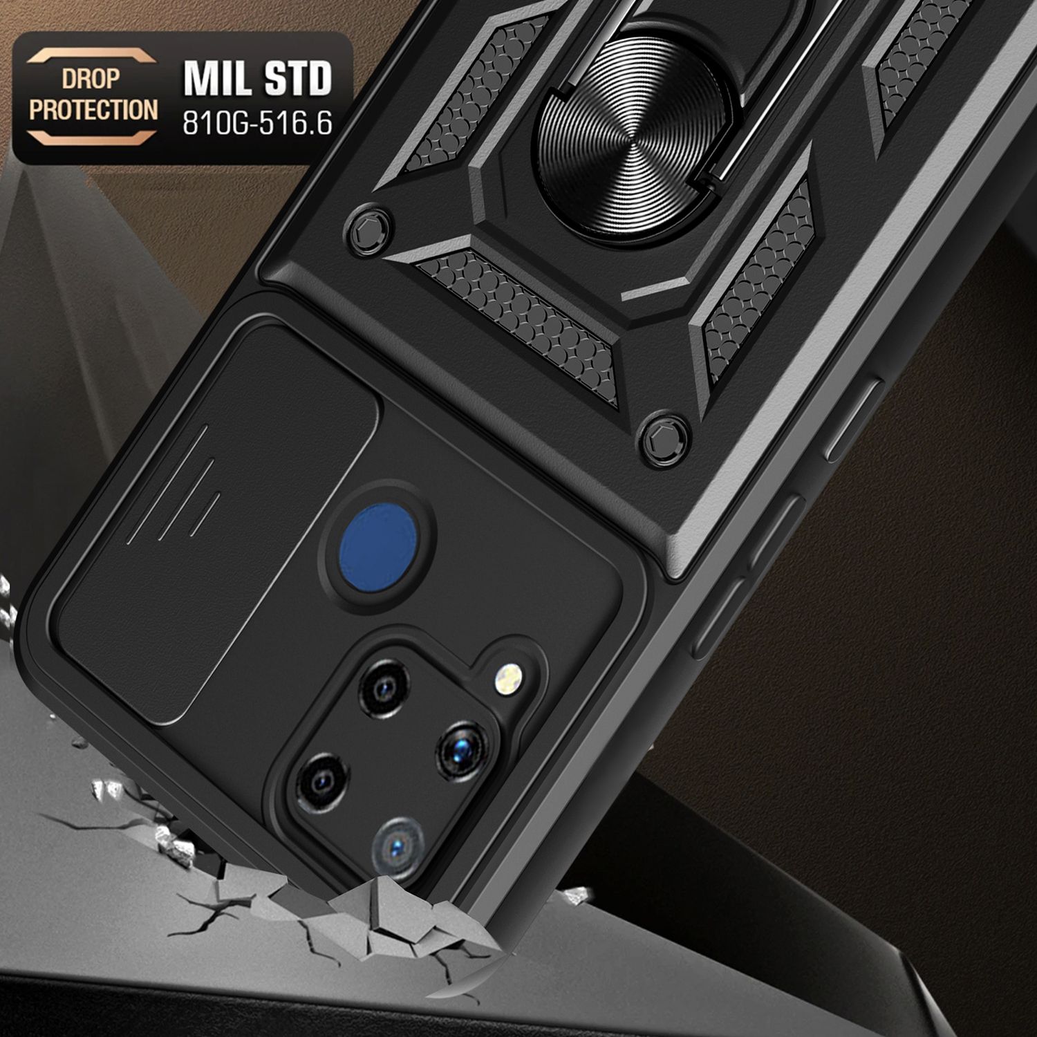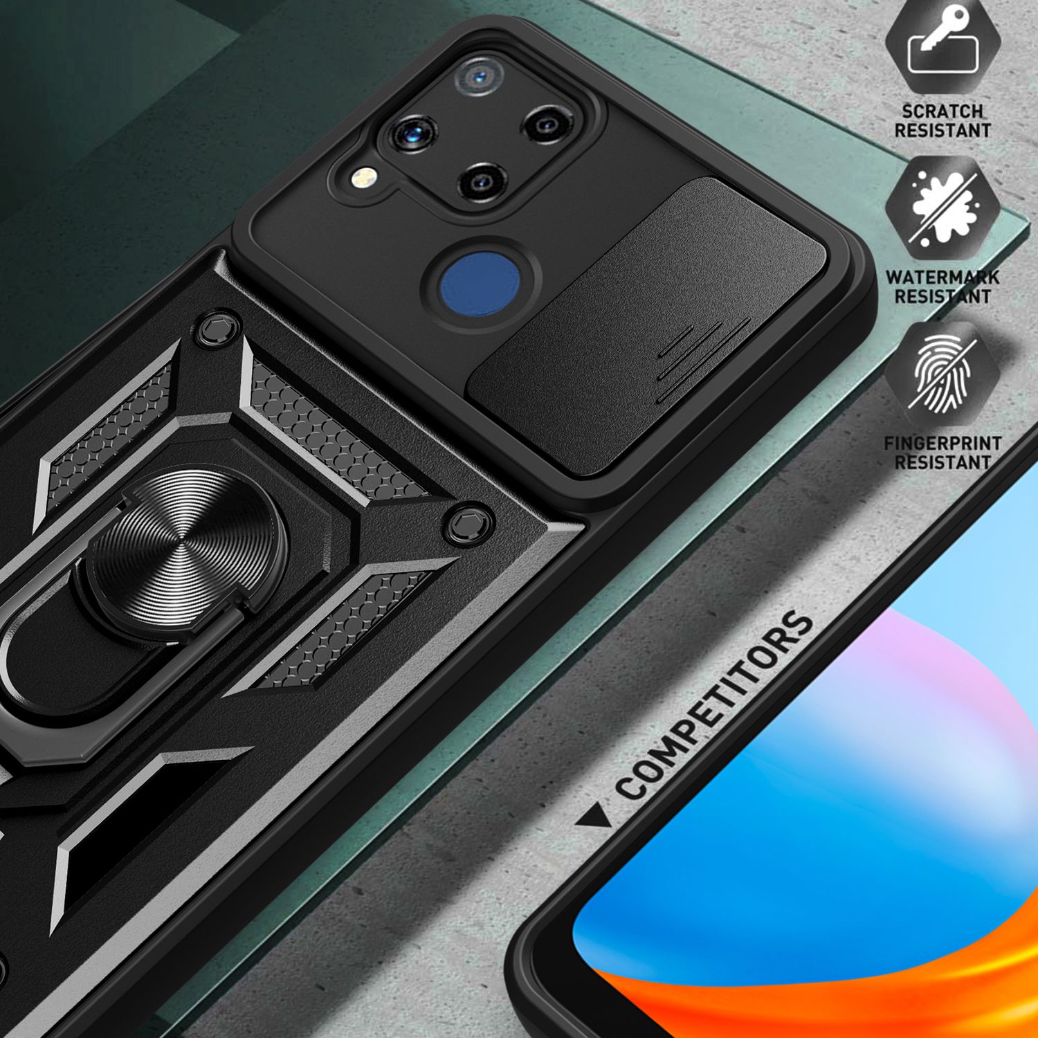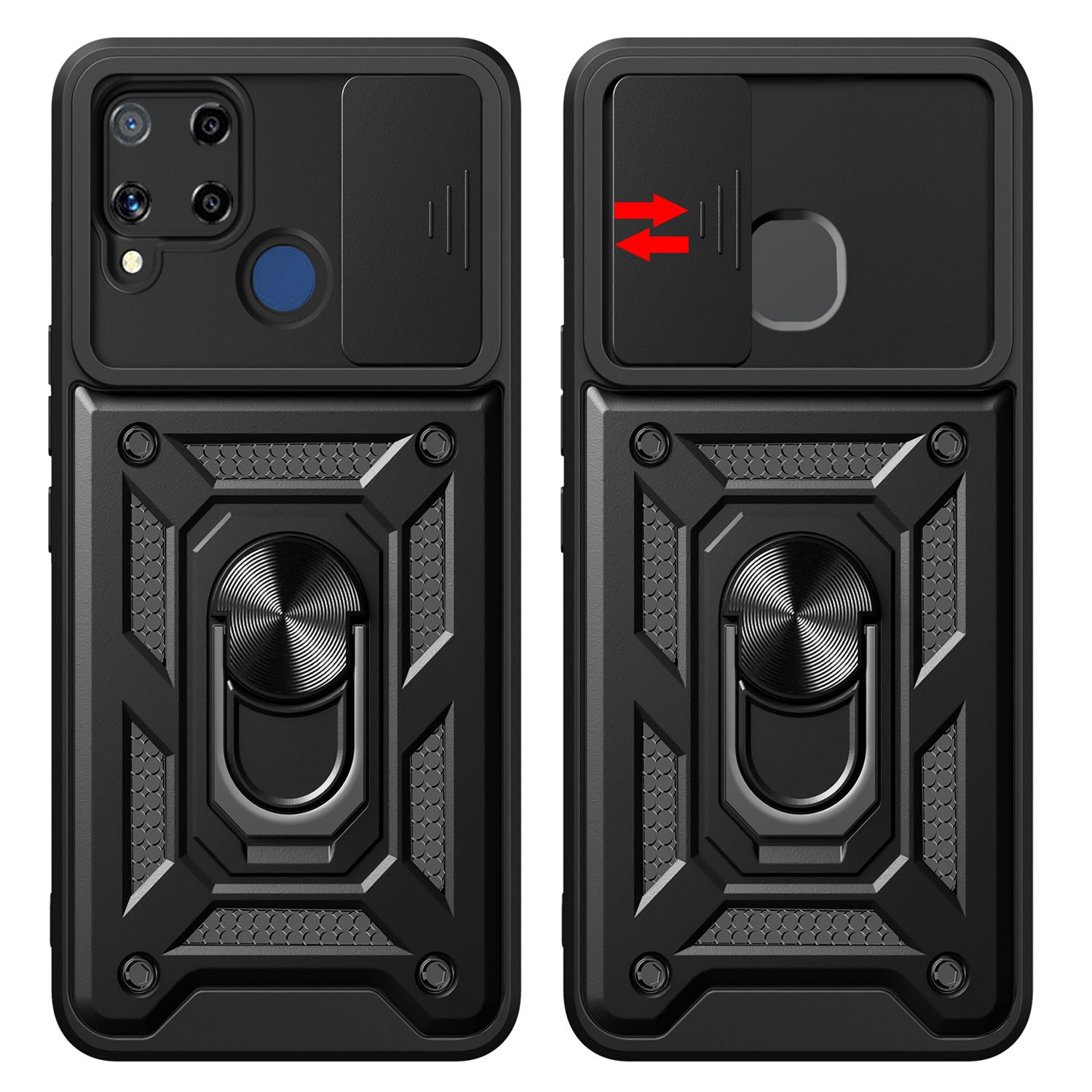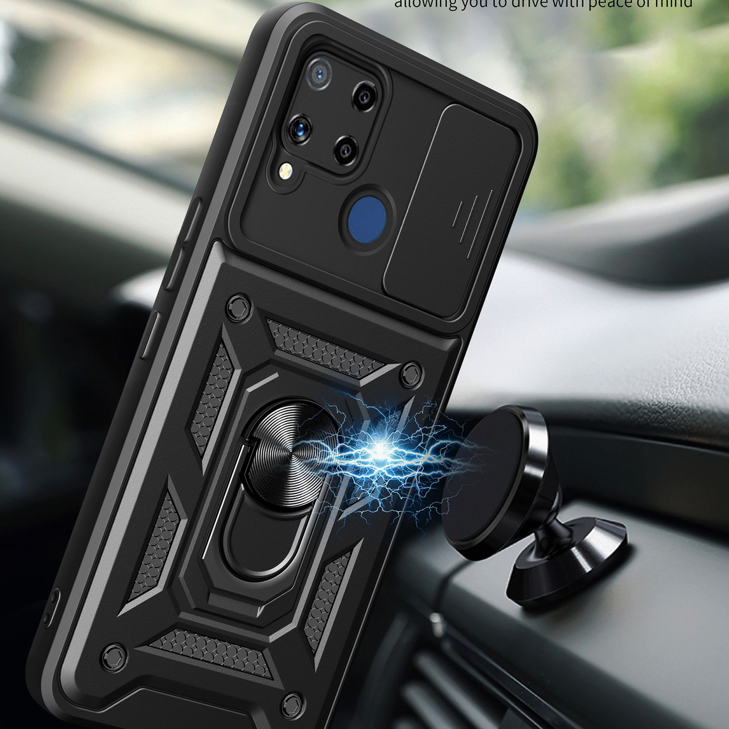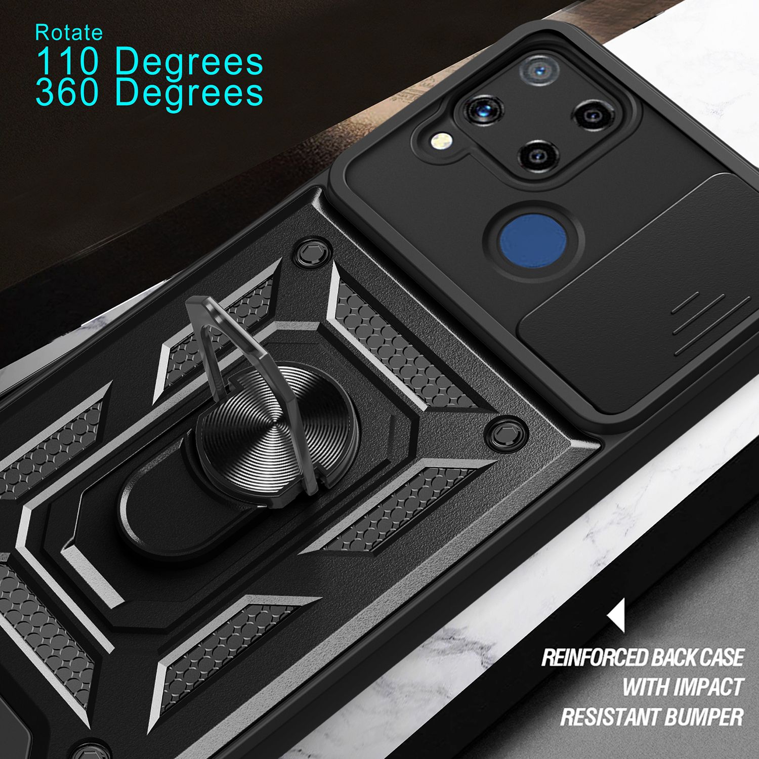 Grade Case with Len Protective Cover for Realme C25 / C15; [Kindly Note: Due to finger ring, can not support wireless charging directly.]