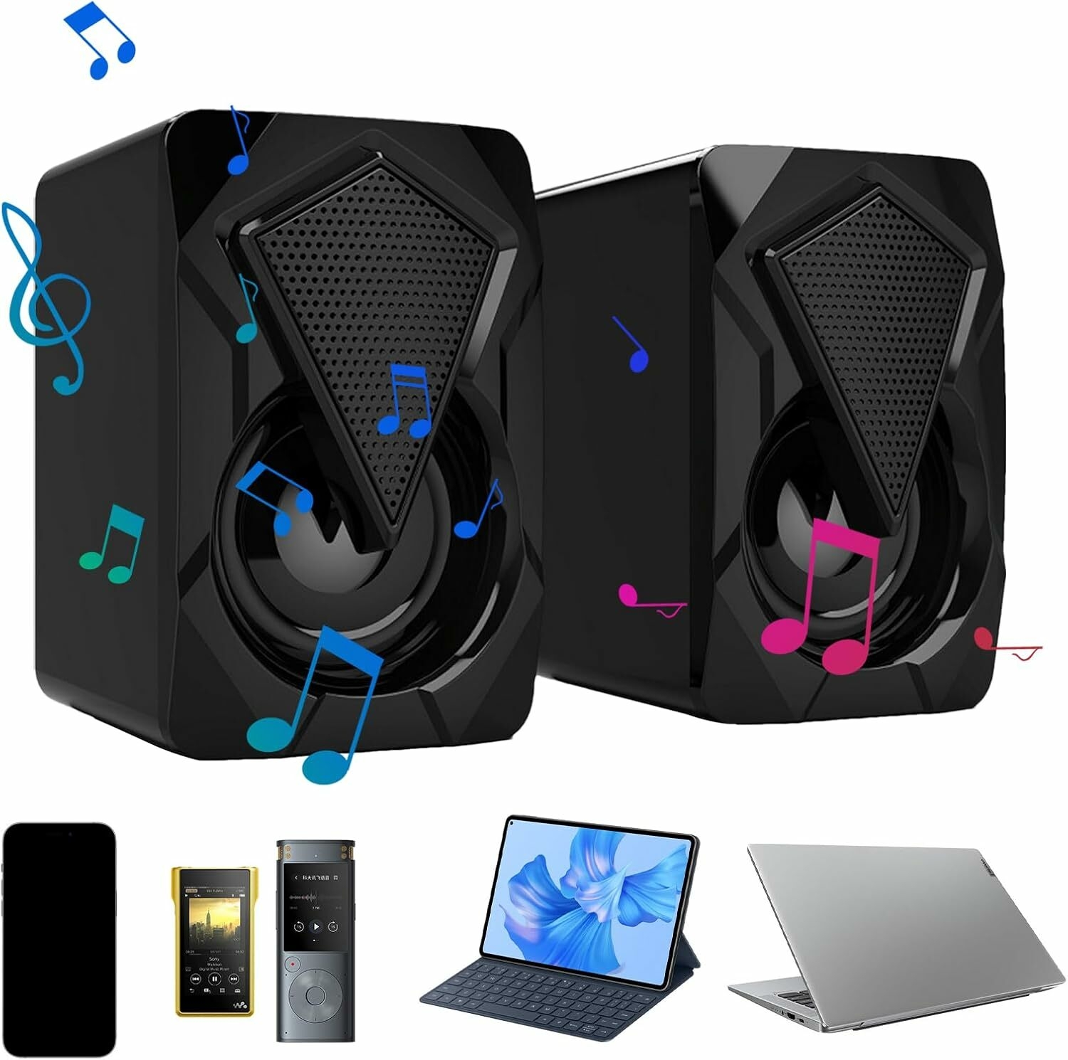 Outstanding bass quality, compared to other small speakers. In order to make up for the lack of bass of the Mini 2.0 speakers, the unique acoustic resonator structure using the enclosed low-frequency aid design makes the sound more penetrating and powerful. Note: Restricted to the small body, bass effect still can’t compare with big speakers and professional subwoofer.