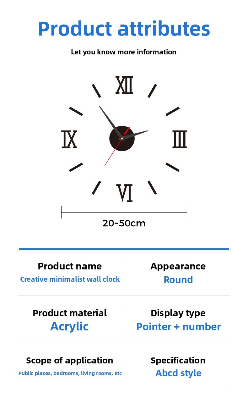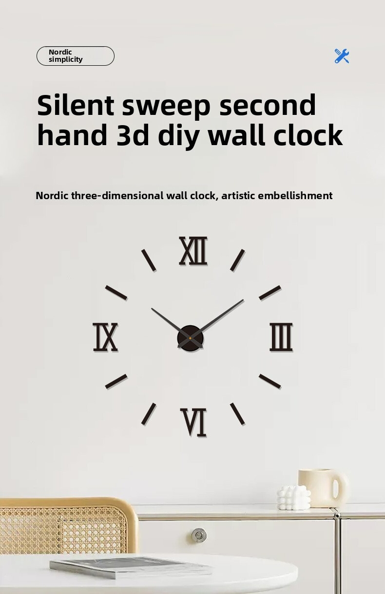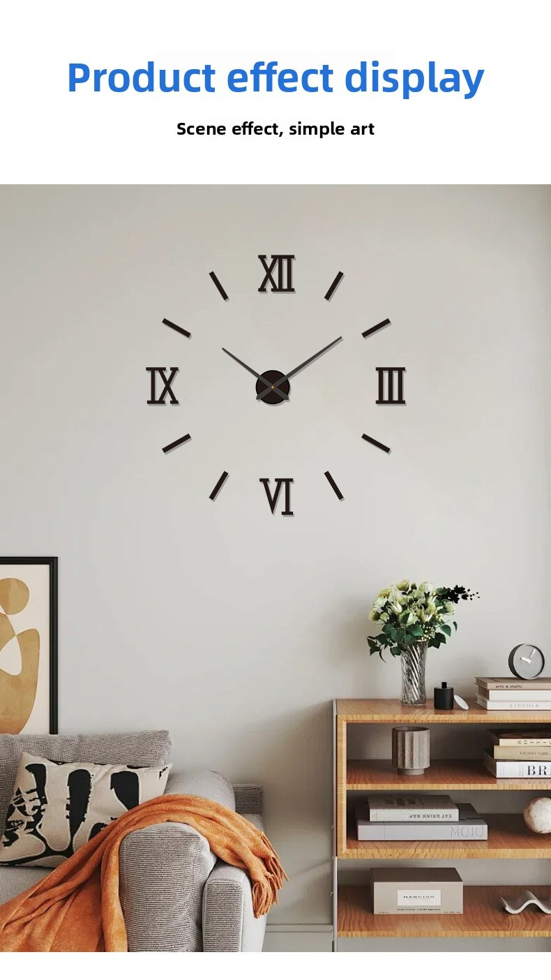 Key FeaturesProduct Category: Wall ClockDouble-Sided Or Not: Single-SidedStyle: NordicAppearance shape: RoundApplicable places: living room, bedroom, study room, office, public spacesDisplay Type: Pointer NumberSpecial Features: DecorationWaterproof: NoPower Type: BatteryMovement Type: Sweep Second MovementMovement's Place of Origin: ChinaMovement model: Scan SilentSize: Black with 40cmThickness: 1mm-10mmShell Material: AcrylicMirror material: Precision AcrylicPackaging specifications: 15*10*4cm/1 set