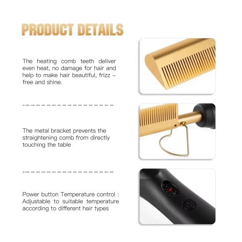 【More suitable comb tooth design Based on feedback on tooth of the first generation heated comb, We optimized the depth and width of the tooth to straighten hair better. besides, straightening comb releases negative ions, which help reduce static &frizz