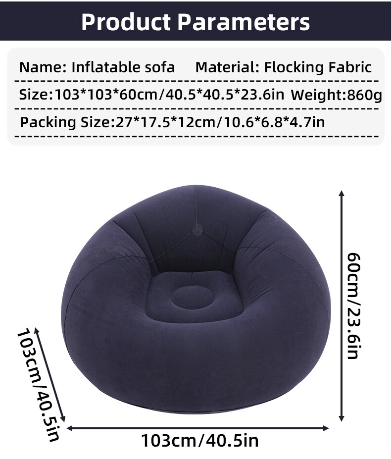 High-quality flocking and PVC material: Our inflatable recliner is made of high-quality flocking and PVC material, which is soft and comfortable while ensuring durability. Enjoy the luxurious feel and reliable quality of our premium materials.