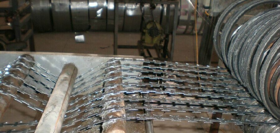 Razor wire is also named Concertina Wire, Razor Barbed Wire, Fencing Wire, or Razor Type Barbed Wire. It is a kind of modern security fencing materials with better protection and fencing strength made of hot-dipped galvanized steel sheets or stainless steel sheets. It comes with beautiful sharp blades and strong core wire that is very hard to cut. Its diameter is 450mm and it easily integrates to your electric fence. This razor wire has the features of easy installation, age resistance and secure fencing. One razor wire can be stretched from 8-11M depending on your need. Based on the coil design of the razor wire, it provides maximum security and typically used at prisons and on military bases.