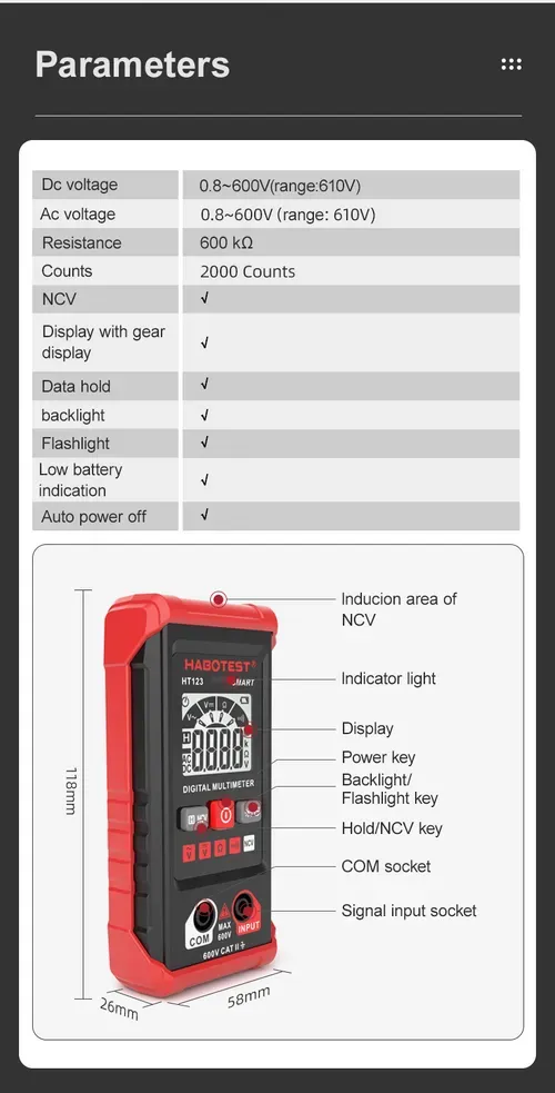 HABOTEST HT123 Smart Multimeter - High Precision, NCV & Backlight Electrical Tool EssentialKSh 3,200Add to cart