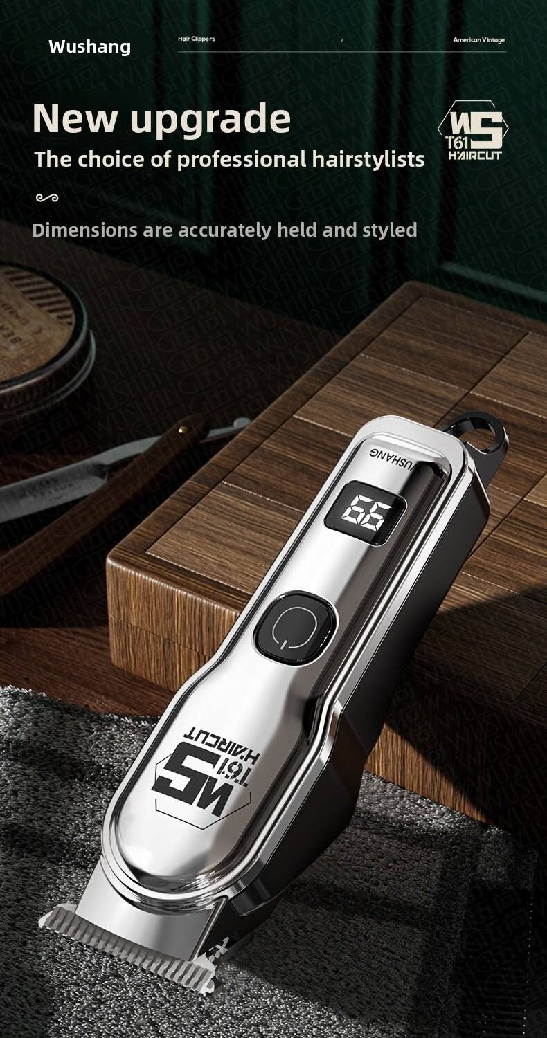 Stainless steel blade head, LCD battery display, high-speed motor, 180 minute battery life, dual-purpose charging and plugging, one click start, minimal noise, skin friendly, easy to handle, intelligent prevention of hair clipping