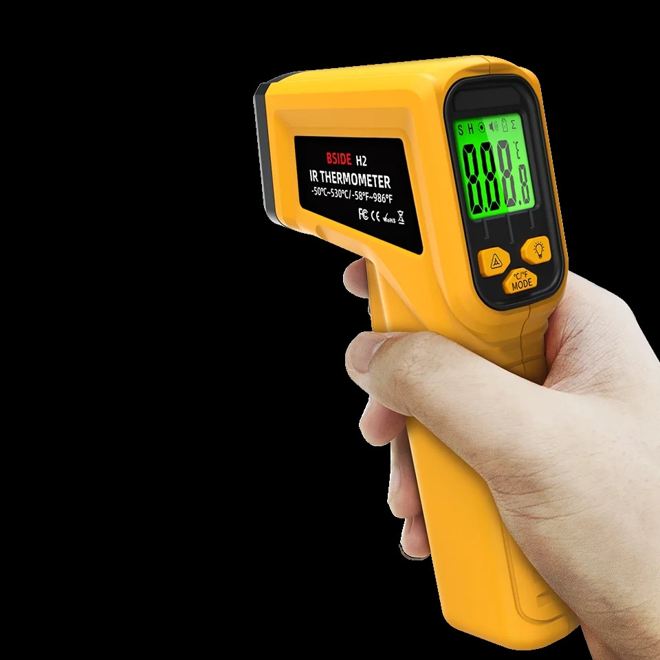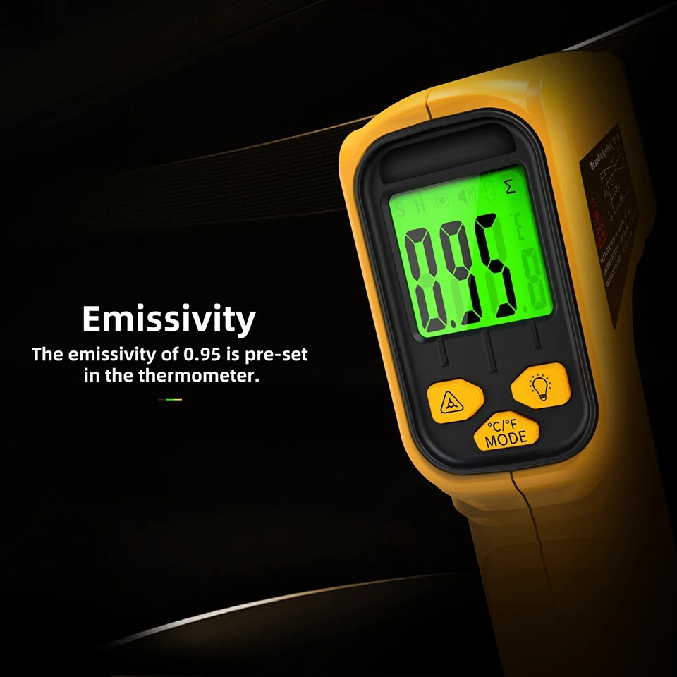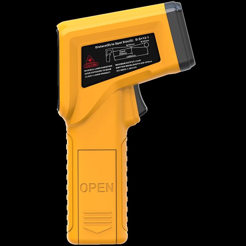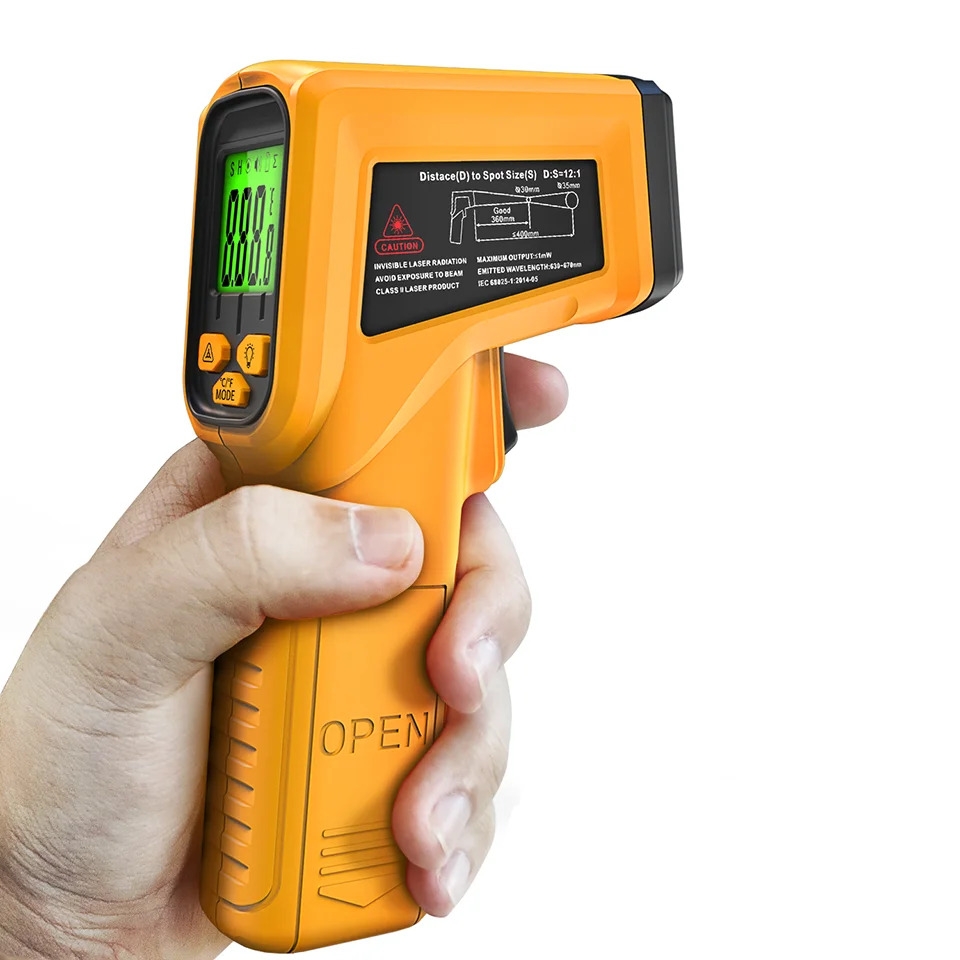 High Sensitivity: This thermometer is equipped with a high-sensitivity temperature sensor, capable of measuring temperatures from -50℃ to 530℃ within 0.5 seconds, with a measurement error of no more than ±1.5%. Its point-to-point ratio is 12:1, achieving more accurate measurements at the same distance, suitable for fast-paced, high-demand work environments.