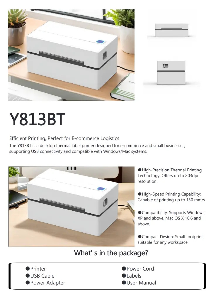 Upgrade your shipping and logistics workflow with the Y813BT Desktop Thermal Label Printer - the ultimate solution for e-commerce sellers, offices, and small businesses. Designed for speed, precision, and reliability, this compact printer ensures every package label is crisp, professional, and ready in seconds.