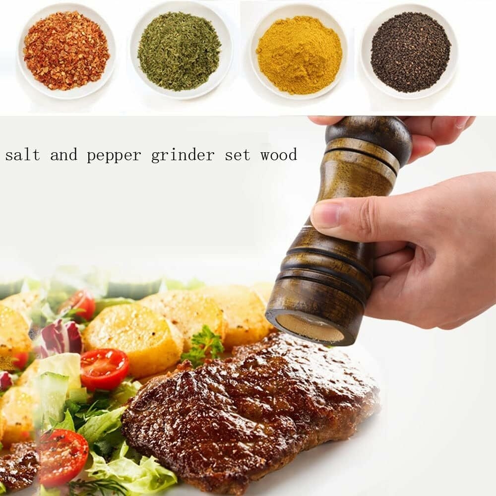 3.Suitable for a wide range of different spices. Himalayan sea salt, peppercorn medley, herbs or any other spices are all available. Grinding mechanism is on the top of each mill ensuring salt or pepper ends up only on your food -- not all over your table or counter.