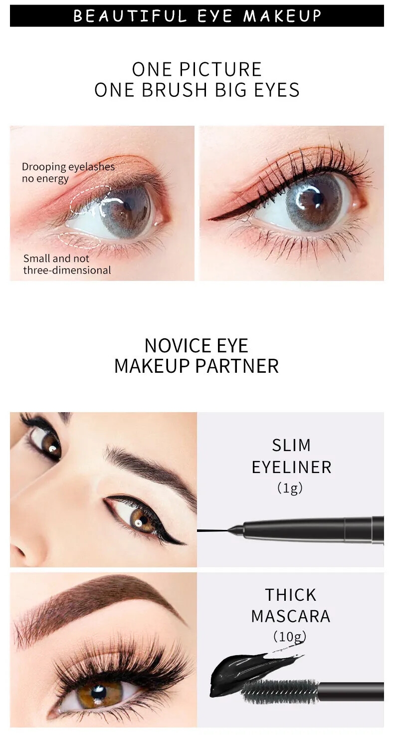 4. Large capacity: The mascara capacity is 9.5ml and the eyeliner is 0.35g, which is large enough for daily use and great value for money.