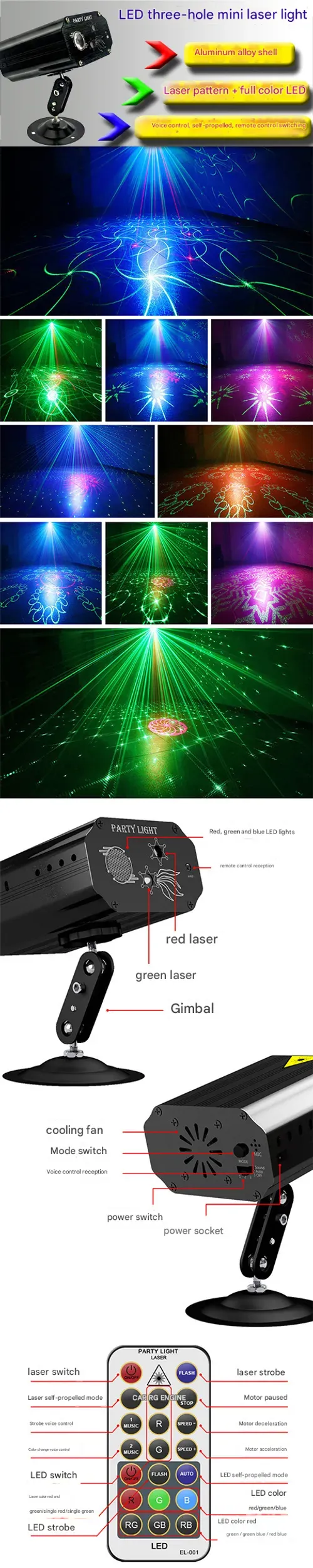HomeMusical InstrumentsLive Sound & StageLighting Equipment & AccessoriesLaser & Strobe EffectsStage Laser LightsMini LED Laser Light! Red-Green-Blue Three-Color Stage Light, Disco Laser Spotlight + Remote-Controlled Laser Light, Special for KTV & Bar Private Rooms, Instant Atmosphere Boost