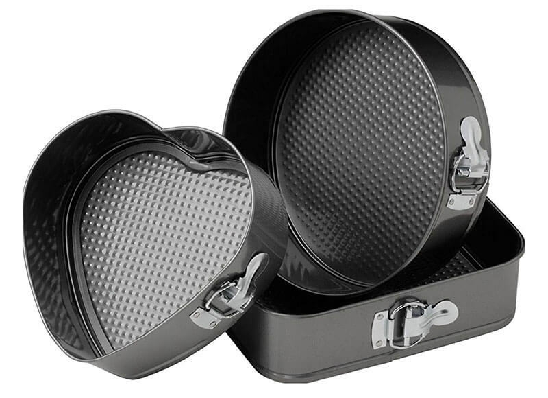 This Spring foam Baking Pan set of 3 molds are available in three different sizes to provide you with a more diverse choice. It has been designed to feature a waffle bottom that ensures an effortless release while transferring onto a serving plate. Moreover, its side locks securely hold together cakes or desserts and facilitate smooth release that won’t require you to prise, bang or gauge the contents out.